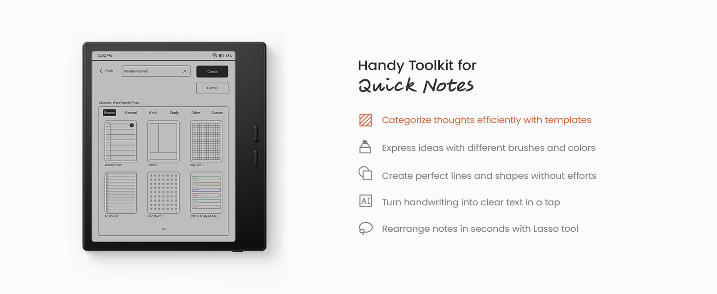 - Front Light with CTM (Warm and Cold) G-sensor for Auto Rotation