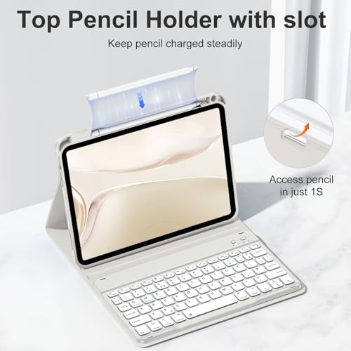 Keyboard Case for iPad 10th Generation 2022/iPad A16 11th Genration 2025 (10.9/11 inch) with Pencil Holder, Anti-fall Keycaps Detachable Bluetooth Keyboard Cover, QWERTY UK Layout, LightGray