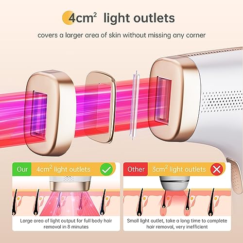 - 【 – 】The 4CM² laser hair removal IPL is larger and faster than the common 3CM² IPL hair removal systems on the market. Hair laser removal machine removes hair from the entire body in just 9 minutes. The larger removal area makes hair removal faster and easier for both women and men.