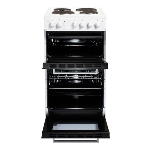 Cookology CFSPTC502WH 50cm Wide Freestanding Electric Twin Cavity Cooker, Combined 93 Litre Capacity with 4 Zone Solid Plate Top Hob Cooktop – in White [Energy Class A]