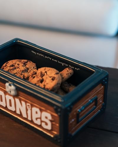 - Design – Instantly add some fun to your kitchen with this treasure chest biscuit jar. Our novelty storage jars add a whimsical touch to your kitchen. Its stylish and original design makes it a perfect complement to any kitchen accessories and home decor. Bring a touch of adventure into your daily routine with The Goonies Treasure Chest Cookie Jar, celebrating the magic of friendship and the thrill of discovery, just like the iconic characters in the beloved film.