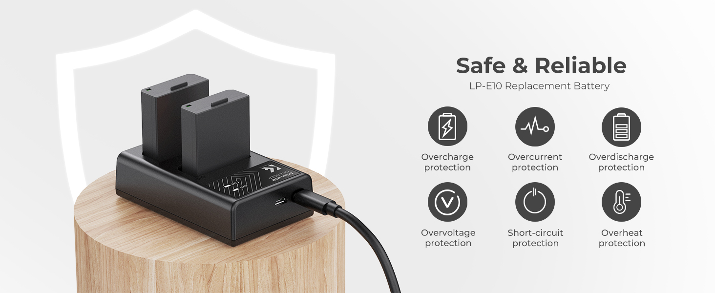 - Built-in advanced safety features such as overcharge protection, short circuit protection, and overheating protection, ensuring the safety of your camera and batteries during charging and usage.