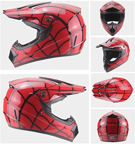 Kids Full Face Motocross Helmet, with Goggles Gloves Mask, Spider Web Youth Off-Road ATV Scooter Motorbike Helmet, Downhill BMX MTB Quad Dirt Bike Enduro Racing Crash Helme