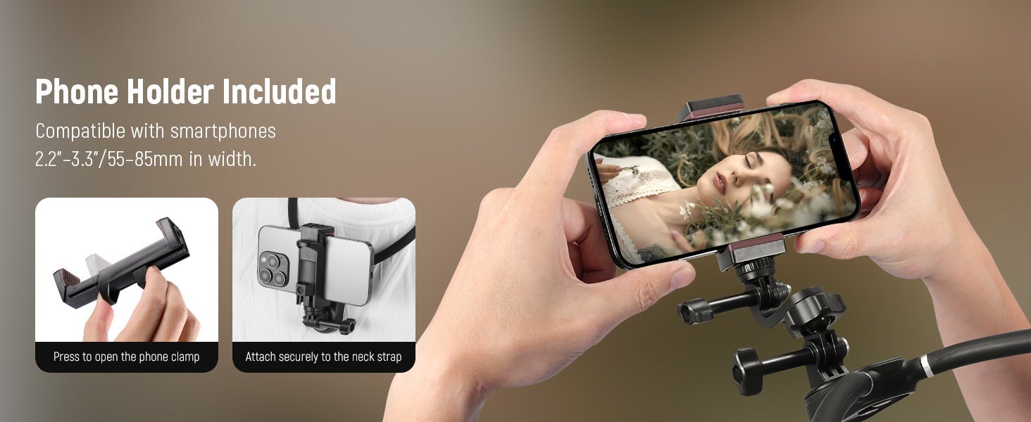 - 【Comfortable & Bendable Material】 With soft and skin friendly silicone outside and resilient metal wire inside, this neck mount holder is bendable at any shape to fit your neck and shoulder and comfortable to wear