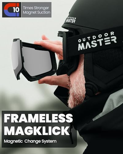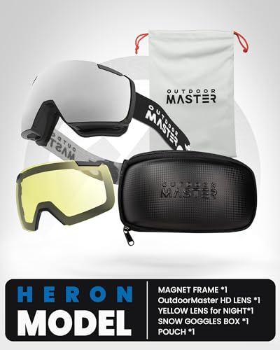 OutdoorMaster Heron Ski Goggles with 2 Lens, Frameless, Magnetic Interchangeable HD Toric Lens, OTG Snowboard Goggles for for Men & Women, 100% UV Protection Snow Goggles