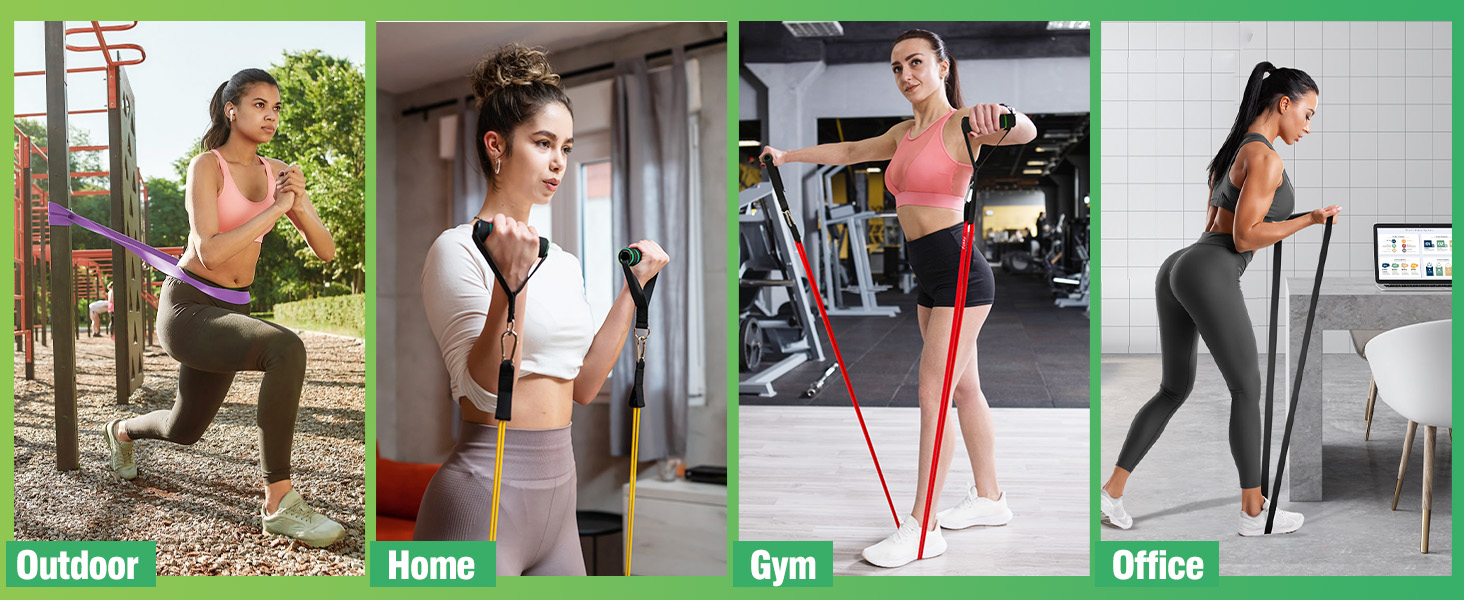 - 【Portable Resistance Bands Set】The resistance bands set includes: 4*resistance bands, 2*handles, 1*door anchor, 2*protective covers, 1*exercise poster, 1*carry bag. Simply throw the workout bands into your handbag and you can use them not only at home or at the gym, but also in hotels or outdoors.In addition,long resistance bands can also be used as gifts for friends or family members who love sports.
