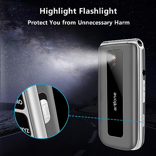 - 【Classic and easy-to-use flip phone】 The artfone 4G flip phone is a stylish and convenient phone for seniors. It has a classic clamshell design that is black on the outside and silver on the inside. It is compact and lightweight, fits in any pocket and can be easily unlocked by opening the cover. The 2.4-inch color display shows large fonts and clear icons that make it easy to operate. The phone also has a high volume and a clear sound that are suitable for older people.
