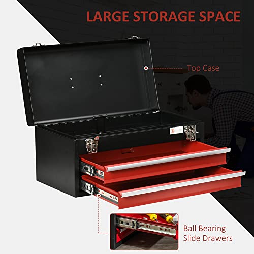 DURHAND 2 Drawer Tool Chest, Lockable Metal Tool Box with Ball Bearing Runners, Portable Toolbox, 460mm x 240mm x 220mm, Black