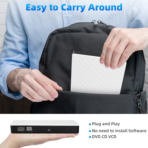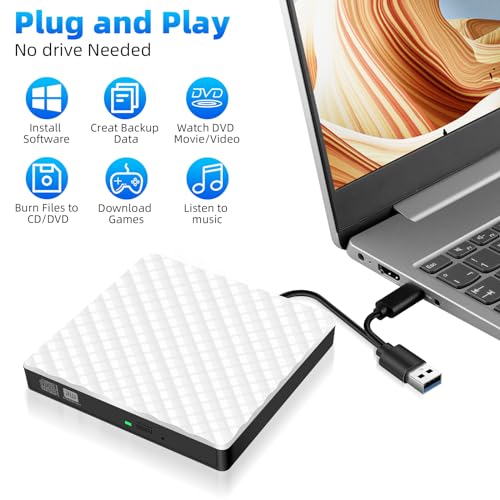 - PLUG & PLAY:User-friendly. This external DVD drive operates effortlessly by drawing power from your USB port. No need for additional drivers or external power supply. Simply plug it into your USB port and let the system automatically detect the DVD drive.