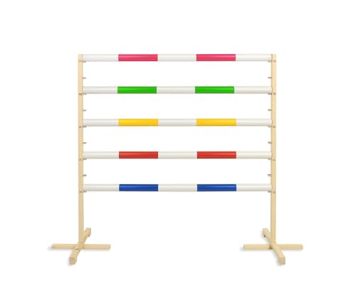 Horse hobby is an increasingly popular sport. With this activity, you will stimulate your child’s creativity by setting obstacles at different levels and configurations. Hobby Horse fun has a positive effect on baby’s development, encourages physical activity. The child will run and jump more, which will have a positive effect on their proper development. The obstacle is ideal as an accessory for playing with a horse on a stick. It can be used both in confined room and in open space. Great for playing under the pole – not just for children at family parties. The obstacle can also be used for playing with the dog – it will improve its condition! The obstacle is durable and safe, made of perfectly sanded pine wood, so that your child will not hurt himself when jumping or moving the stand. It has sturdy feet to stand securely. The rods are plastic, lightweight, available in several colours. The obstacle pole can be adjusted to a height of 40 cm to 120 cm, depending on the child’s height and motor capabilities. The crossbar is designed to fall off when you pull your leg. It is not possible for Baby to fall over when jumping.