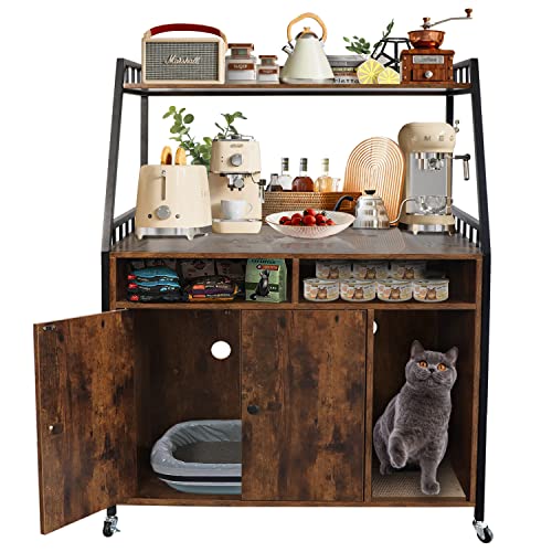 - 【Multifunctional Cat Litter Box Enclosures】:The two-in-one functional design of this cat house not only serves as a hidden cat lavatory, but also as a multifunctional shelf for storing cat food, toys and other pet supplies. It looks like an ordinary piece of furniture that you can place anywhere in your home. The litter box enclosure can be used as a display shelf in the living room, a storage cabinet in the bedroom, or even a bathroom organizer, saving more space in your house.