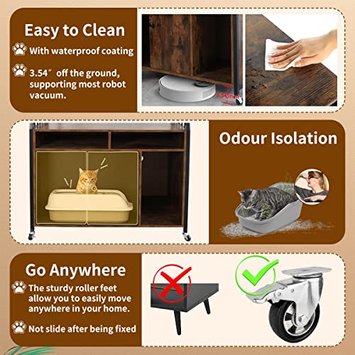 - 【Multifunctional Cat Litter Box Enclosures】:The two-in-one functional design of this cat house not only serves as a hidden cat lavatory, but also as a multifunctional shelf for storing cat food, toys and other pet supplies. It looks like an ordinary piece of furniture that you can place anywhere in your home. The litter box enclosure can be used as a display shelf in the living room, a storage cabinet in the bedroom, or even a bathroom organizer, saving more space in your house.