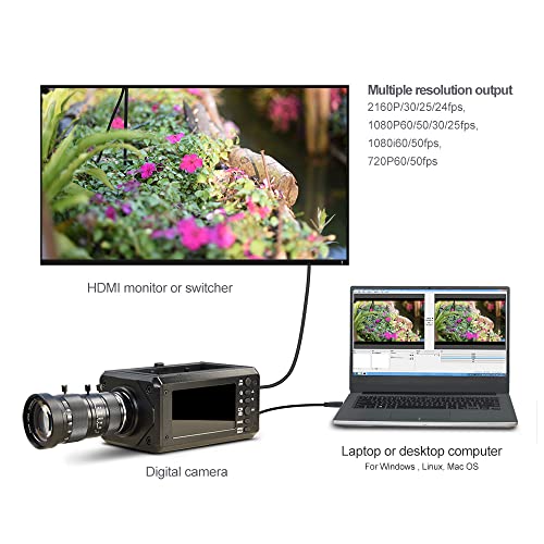 - Support 3840*2160P/30/25/24fps ,1080P60/50/30/25fps, 1080i60/50, 720P60fps HDMI output,Connect to a HDMI monitor capture video show on screen for teaching, or Connect to a HDMI video capture card for small activity Live Streaming.