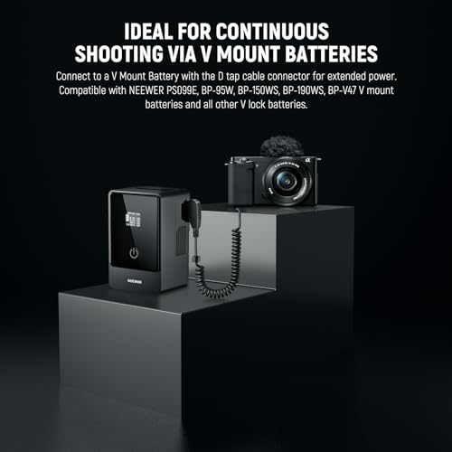 - 【Ideal for Continuous Shooting Via V Mount Batteries】 With a D tap cable connector, it can work with NEEWER PS099E, BP-95W, BP-150WS, BP-190WS, BP-V47 V mount batteries and all other V lock batteries. Compatible with SmallRig v mount battery Series, compatible with Sony BP-U65 BP-U68 BP-U100 BP-U90 V mount batteries