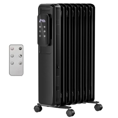 RWFlame Oil Filled Radiator, 1500W Portable Electric Heater with Touch Control Display, Timer & 4 Modes, Overheat Protection & Tip Over Protection, Vertical Heater for Home & Office (Black)