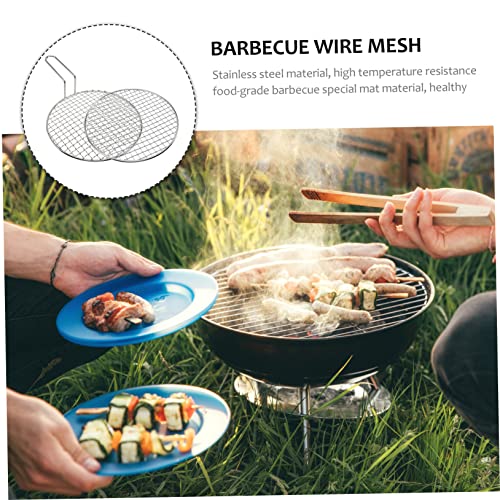 Yardwe 2pcs Stainless Steel Bbq Mesh Metal Baking Rack Stainless Steel Grilling Basket Stainless Steel Barbecue Mesh Bbq Fish Rack Round Canning Rack Meat Grilling Basket Camping Steak