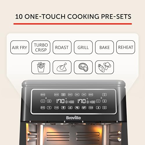 - HEALTHY, TASTY MEALS: This extra large air fryer uses 360° air circulation and 99.5% less oil than standard 3 L Breville fryers for crispy, delicious results every time