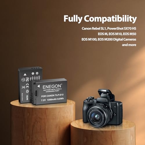 - 【Fully Compatibility】ENEGON Replacement LP-E12 battery is fully compatible with Canon Series, including Canon Rebel SL1, PowerShot SX70 HS, EOS M, EOS M10, EOS M50, EOS M100, EOS M200 Digital Cameras, and more.