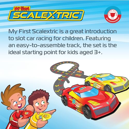 - Racing Track Sets for Kids: A great introduction to the world of Scalextric featuring easy-to-assemble figure-of-eight race tracks for boys. My First Scalextric sets for kids are the ideal toddler toy cars for younger children aged 3+. The two sci-fi toy cars for kids and their adjustable power hand-controllers are colour coded in red and yellow to match chevrons on the circuit