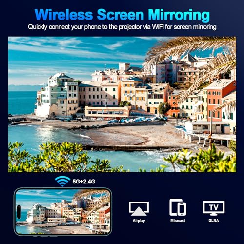 Projector with 5G WiFi,Protable Video Projector 16000 Lumen Native 1080P BT 5.1 Electric Focus,Home Theater Movie Projector Compatible with iOS & Android Phone/TV Stick/Laptop/VGA Indoor & Outdoor Use