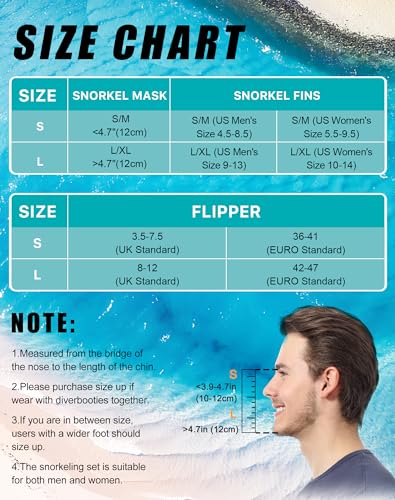 - YOUR BEST SNORKEL PARTNER: Thanks to the short fins and foldable snorkel mask design, our snorkeling gear for adults and youth can be easily packed in carrying bag (included) and great for travel. Whether you're a beginner or an experienced snorkeling enthusiasts, this snorkel set will take your next snorkeling trip to better level
