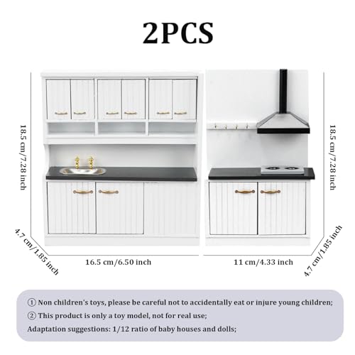 - Elevate Your Dollhouse Kitchen: Our 2Pcs Mini Kitchen Set, meticulously crafted to enhance the charm of your miniature world. This exquisite 1/12 scale wooden set includes a Miniature Stove Cabinet with mini range hood model and Sink Cabinet, perfect for adding a touch of sophistication to your dollhouse kitchen.