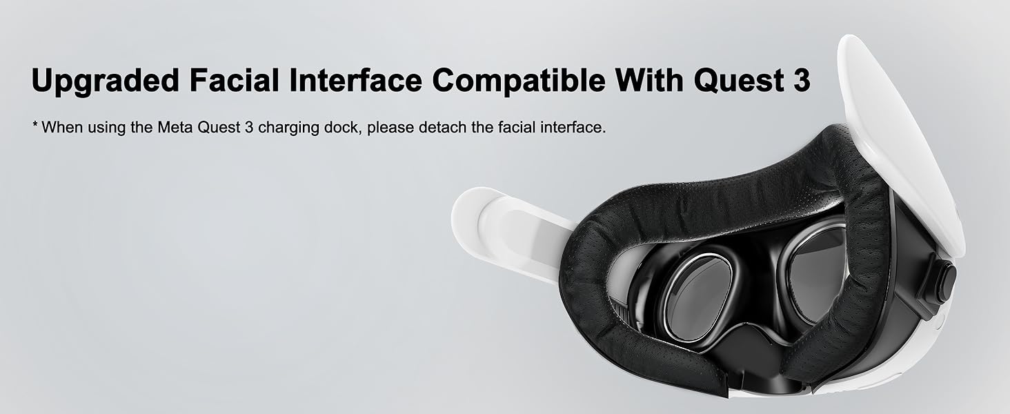 - 【Designed for Meta Quest 3】This Facial interface replacement compatible with Meta/Oculus Quest 3, with PU face cover pad and nose light blocker, designed to improve hygiene, immersion and comfort, provides a soft feel and comfortable fit on your face and helps block out unwanted light from entering the headset.