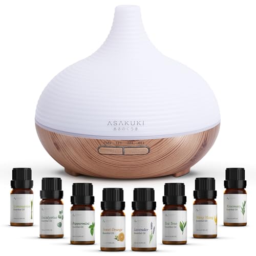 ASAKUKI 300ml Essential Oil Diffuser with 8 * 10ml