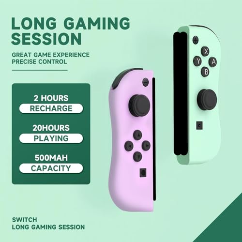 Autker Wireless Switch Controller, L/R Pair Controllers for Switch Sports Support Wake-up/Dual Vibration/Motion Control (Pastel Purple + Green)