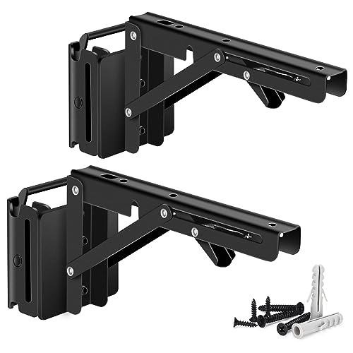 - ✅【Durable Material】- 2 Pack Etrack Foldable Shelf Brackets are miracle workers! Made of thicker high-strength steel, which have strong load-bearing capacity, not easily deformed, more durable and harder than the ordinary steel, the finish with black powder-coating that can stand up to the toughest weather, protects against corrosion and rust for long-term use. The bracket has been upgraded to the sturdiest construction in wall brackets currently – Triangle Shape, which can hold up to 110 lbs.