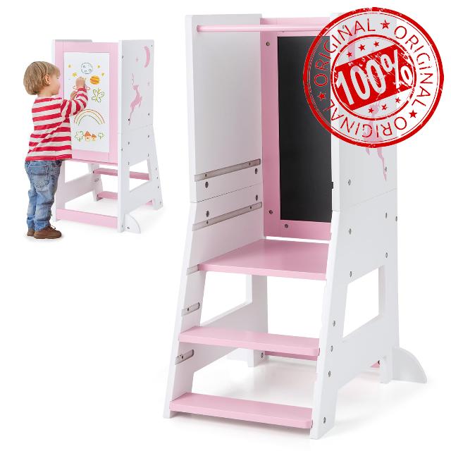 - ✔EXERCISE KID'S DRAWING SKILLS- With the included 3 water-based pens, a white board and a chalkboard, this learning tower stimulates your child's creativity and helps them develop their drawing skills. Plus, the 2 boards support double sided installation.