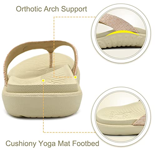 KuaiLu Womens Flip Flops Ladies Yoga Mat Comfortable Walking Thong Sandals with Plantar Fasciitis Arch Support Slip On Indoor Outdoor for Summe