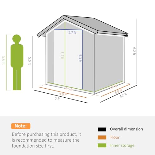 Outsunny 5ft x 4ft Garden Metal Storage Shed, Tool