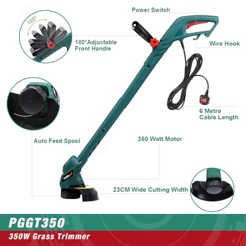 - Warm Tips POSENPRO PGGT350 Electric Garden Strimmer is perfect for basic trimming. If you have a large garden, or need to cut long grass or brambles, a motor of at least 450 Watts is advised.