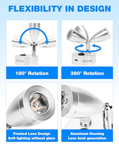 - 【Easy to Install】Just takes 10 minutes to install SUPAREE 12V LED Reading Light Camper on your RV. Surface mount fixtures feature a concealed mounting base, so the mounting hardware (included) is hidden and doesn't take up as much space. Widely used for RV, Campervan, Van, Motorhome or Boat with a 12-30V DC supply power.