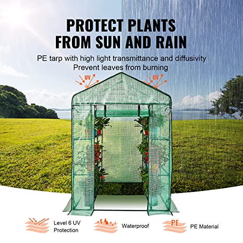 VEVOR Walk-in Green House, 4.6 x 4.6 x 6.6 ft Greenhouse with Shelves, Set Up in Minutes, High Strength PE Cover with Door & Windows and Steel Frame, Suitable for Planting and Storage, Gree