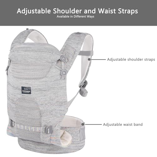 Bebamour Baby Carrier 4-Position Front and Back Baby Carrier with 2 Shoulder Bibs, Knit Series, Grey