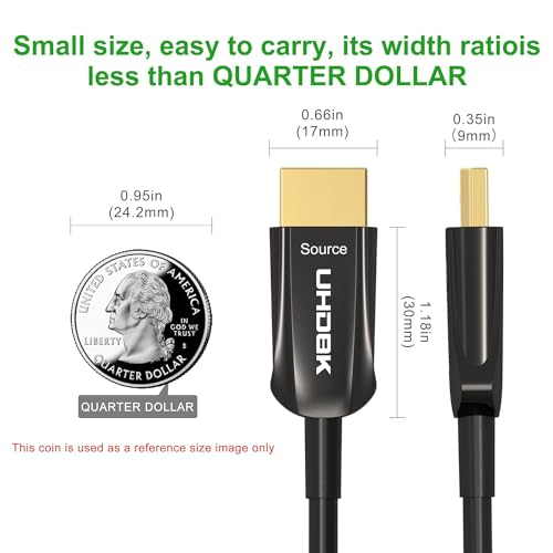 - ✨【Wide Application】: This 8K Fiber Optic HDMI Cable supports Dynamic HDR10,eARC,ALLM,QFT,QMS, VRR,BT.2020, 4:4:4 RGB, HDCP 2.2/2.3. Suitable for all HDMI devices – Playstation 5, Playstation 4, Xbox SeriesX, Blu-ray players, PC, AV receiver, HDTV, laptop, monitor, projector and more