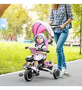 - Robust material: This toddler trike is made of metal frame for superior strength. Adjustable canopy well prevents harmful UV rays and mesh screen at the top for well ventilation.
