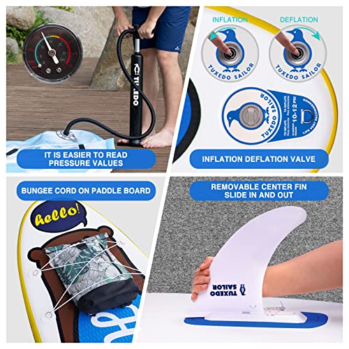 Tuxedo Sailor Inflatable Stand Up Paddle Board SUP Yoga Board Complete Accessories Adjustable Paddleboard, Pump, ISUP Travel Backpack, Mobile Phone Waterproof Bag, Fin, Paddling Surfboard