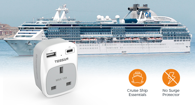 - Compact Size: This travel adapter has a lightweight, portable design that fits easily in your pocket, effectively saving the space of your suitcase, backpack and handbag; No surge protection, no cords, making it cruise ship essensal