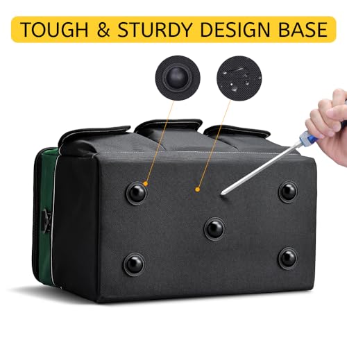 WINHUNT Tool Bag, 15-inch Wide Mouth Tool Organiser, 600 Denier with 6 Interior 8 Exterior Pockets Electricians Tool Bag for Home DIY & Equipment Storage, Green and Black (15 inch)