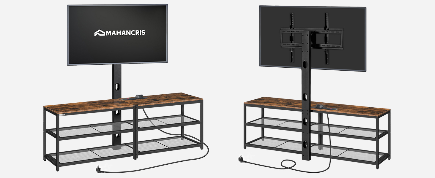 MAHANCRIS 150 CM TV Stand for TV up to 75 Inch, TV Cabinet Table with Swivel TV Mount and Power Outlets, Entertainment Center, Open Shelves, Height Adjustable, for Living Room Bedroom ATVHR35KE01