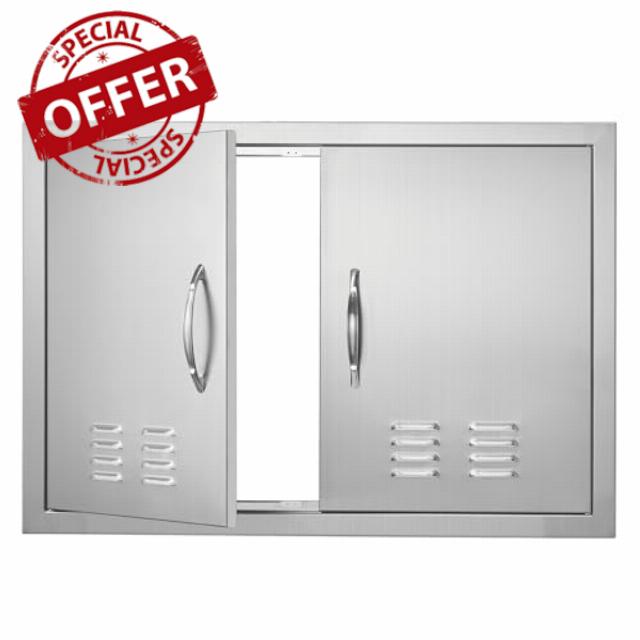 VEVOR BBQ Access Door, 762×533 mm Double Outdoor Kitchen Door, Stainless Steel Flush Mount Door, Wall Vertical Door with Handles and Vents, for BBQ Island, Grilling Station, Outside Cabine