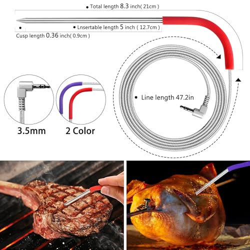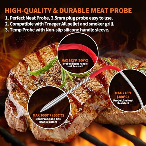 - 【Enhance for Traeger Meat Probe Performance】- Upgraded version for traeger probe – accurate temperature detection. Ensure precise temperature monitoring for all meats with our reliable for Pitboss meat probe set. And crafted with stainless steel cables that withstand temperatures up to 718°F (380°C) and probes that can handle up to 1000°F (500°C).