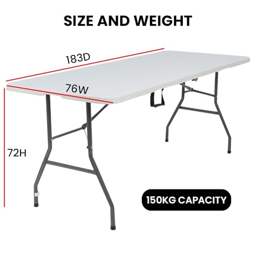 - High Quality Construction: Crafted from durable steel and HDPE plastic, the Alivio 6ft folding table boasts a sturdy and reliable build, ensuring long lasting use for various activities.