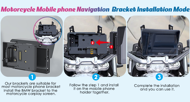 - ️【Custom Mount for BMW Motorcycles】: The W502b motorcycle CarPlay screen includes a tailored bracket kit and specialized tools for BMW motorcycles, ensuring effortless installation. The custom bracket kit and secure screw system provide a stable setup for mounting the screen on your R1200GS, R1250GS, or S1000XR motorcycle. Please note: you must possess the original navigation base for BMW Motorcycles to utilize this product.