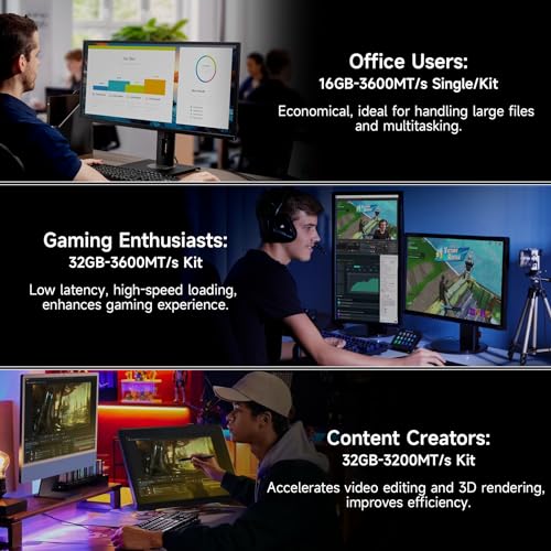 - 【Powerful Heat Dissipation】:16GB RAM Equipped with a 0.8mm thick Aluminum alloy heat sink, while a high thermal conductivity thermal back glue keeps the memory stable within a suitable operating temperature.