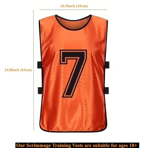 Football Bibs for Adult Youth, 24 Pack Sports Training Mesh Bibs, Numbered Practice Vest Pennies for Soccer Basketball Football Volleyball – Orange & Gree