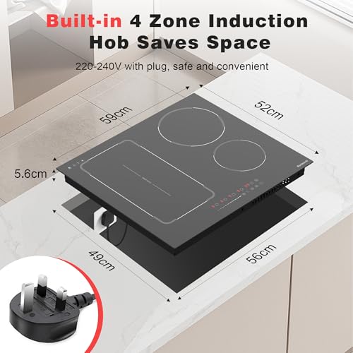 - 【Suitable for Magnetic Cookware】This 4 zone induction cooktop is suitable for magnetic cookware, 4 burners can cook different dishes at the same time, family gatherings, holiday parties can easily cook big meals. The plug in induction hob is easy to install without additional wiring, the built-in size of the induction cooker is 49cm*56cm*5.6cm, the built-in installation enhances space utilization, beautiful and comfortable.